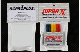 This is a pack of six RCPROPLUS RME Supra X Brushless Motor Wire Connectors. This set includes six male and six female polarized connector housings, as well as six male and six female bullet connectors.